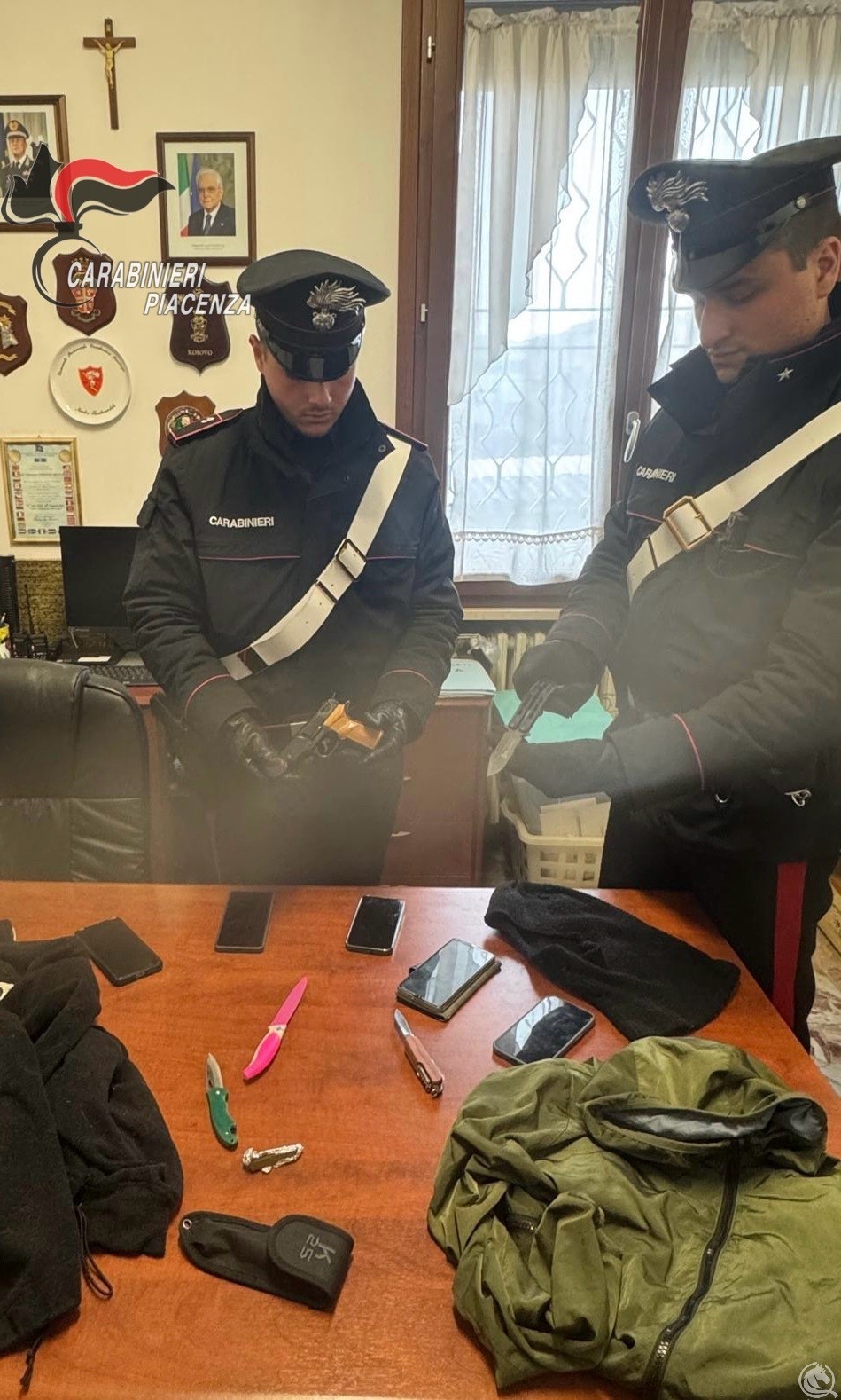 Durante le perquisizioni effettuate sia in provincia di Piacenza sia in quella di Cremona, sono stati rinvenuti oggetti ritenuti di particolare interesse investigativo, tra cui tre coltelli e una pistola giocattolo priva di tappo rosso.