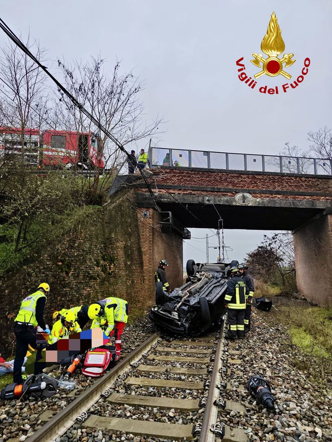Grave incidente stradale nel pomeriggio di oggi 1° dicembre a Polignano di Caorso. Per cause in corso di accertamento una Fiat Punto è precipitata da un cavalcavia finendo sui sottostanti binari del treno, lungo la linea Piacenza Cremona. Sul posto sono confluiti i soccorsi ed i vigili del fuoco hanno operando per liberare gli occupanti del veicolo dalle lamiere. Si tratterebbe di due giovani pakistani, uno dei quali in condizioni molto serie è stato portato in eliambulanza al Maggiore di Parma. Fortunatamente si è riusciti ad evitare il peggio ed il treno merci che avrebbe dovuto transitare da lì a poco è stato fermato grazie al tempestivo intervento delle forze dell’ordine.