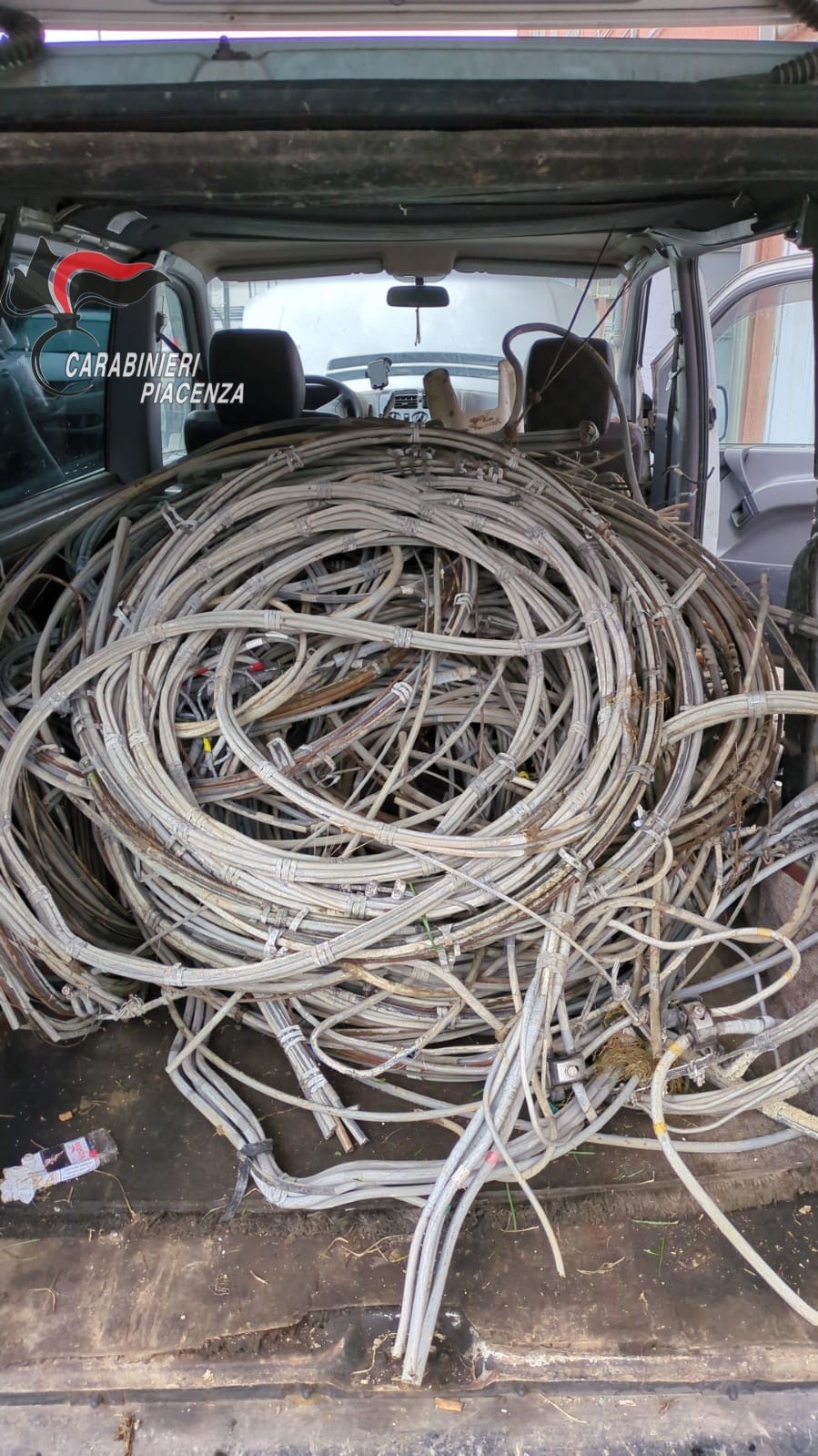 Il mezzo era già stato notato in sosta in via Roma a Fiorenzuola d’Arda, sin dalla notte precedente, ed era stato segnalato ai militari. E’ possibile che si tratti di un carico accumulato per giorni che il 32enne avrebbe portato successivamente in un posto sicuro al fine di “spellare” o incendiare i cavi per estrarre il rame.