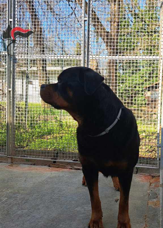 Un cane rottweiler rinchiuso, senza cibo nè acqua, denutrito, è stato salvato dai carabinieri.