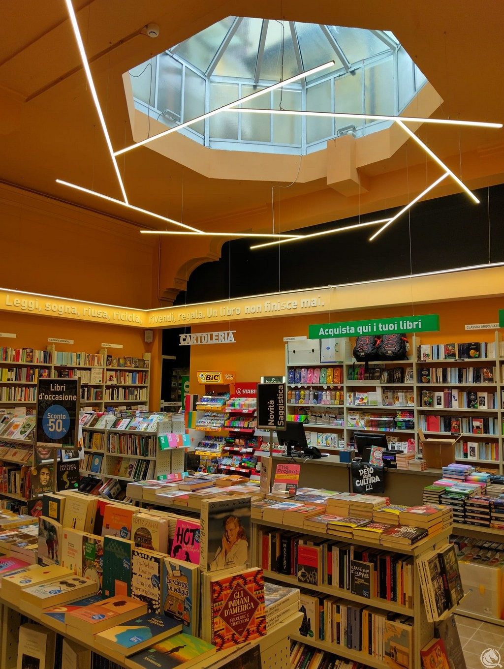 All’interno della libreria, i clienti troveranno un ampio assortimento di volumi nuovi e usati, con sconti fino al 50%, oltre a una selezione di modernariato e titoli d’occasione. Particolare attenzione è riservata al settore scolastico, disponibile tutto l’anno: sarà possibile prenotare e vendere libri, con valutazione e pagamento immediato. L’offerta si completa con narrativa, saggistica, fumetti, manga e articoli di cartoleria.