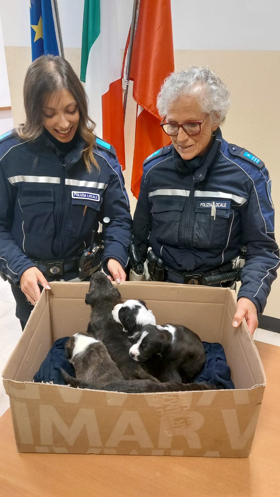 La Polizia Locale recupera cinque cuccioli abbandonati in uno scatolone a Borghetto
