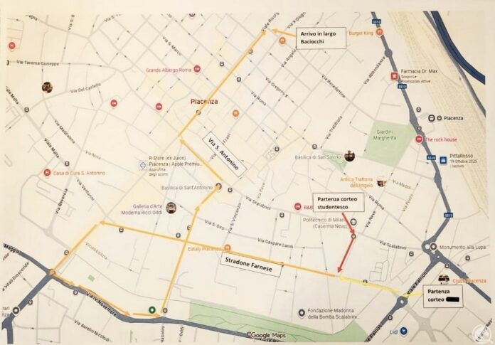 Il percorso del corteo, che interesserà in successione le seguenti zone: