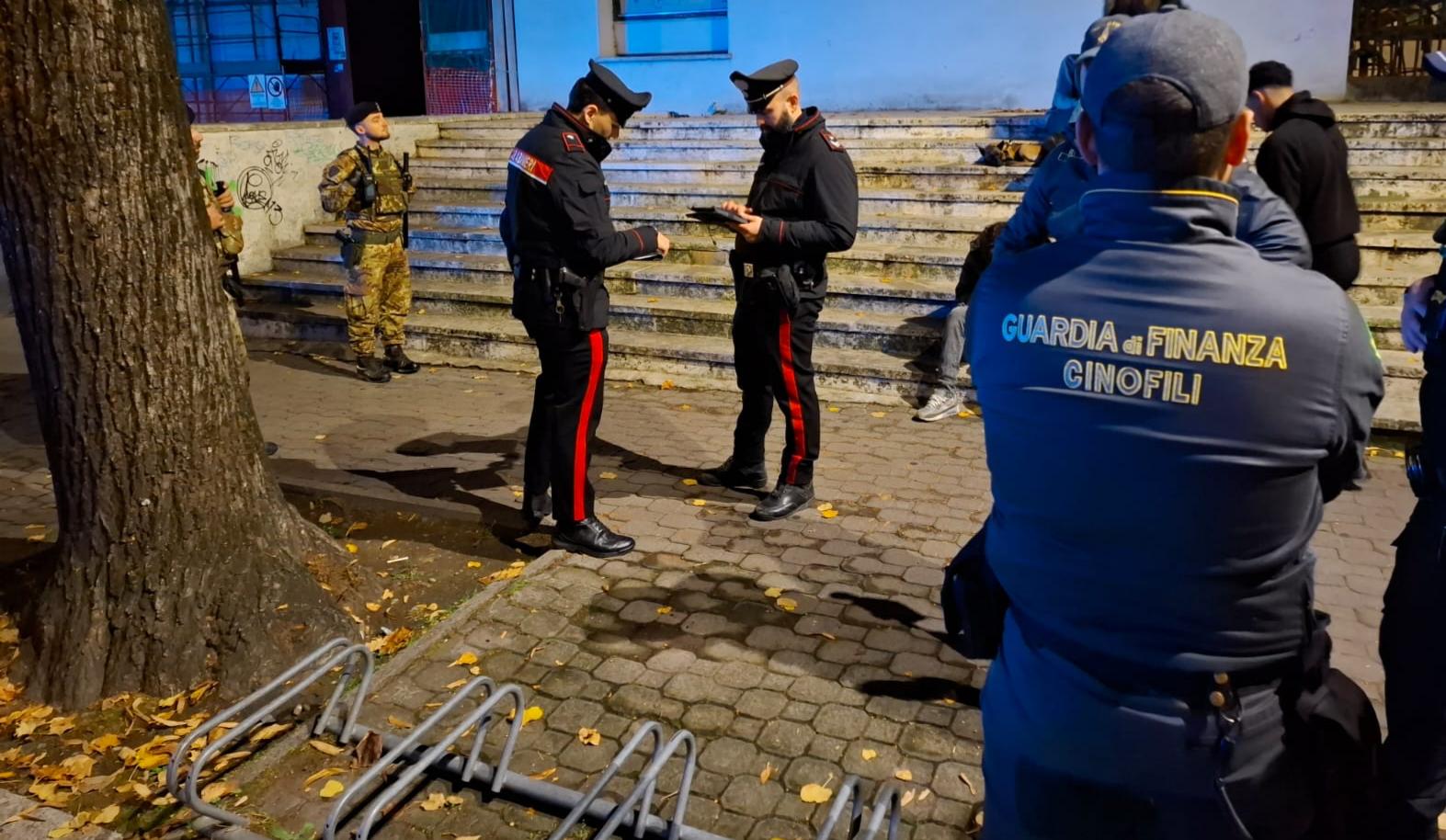 Sono stati impiegati uomini e mezzi della questura – Squadra Mobile, Volanti e polizia amministrativa – insieme ai carabinieri, alla guardia di finanza (con unità cinofila antidroga) e alla polizia locale, per un totale di 14 pattuglie.
