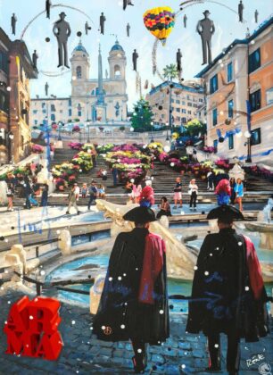 Le tavole firmate da Renè Luigi Valeno, esponente della nuova Pop Art italiana, rappresentano i Carabinieri nel loro servizio quotidiano tra la gente, nei luoghi simbolo della cultura e della vita del Paese. Ogni immagine restituisce l’idea di presenza costante e di dedizione, trasformando il linguaggio della Pop Art in un omaggio alla quotidianità dell’Arma.
