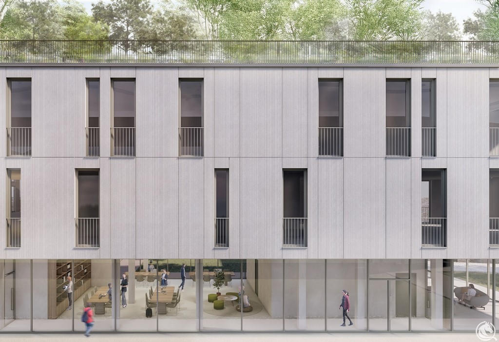 La struttura verrà integrata nel contesto per mezzo di una reinterpretazione moderna degli elementi architettonici del complesso esistente. Rispettando l’altezza del corpo seicentesco, la neo-struttura si svilupperà su tre piani fuori terra e un piano interrato. Al piano terra, all’interno di un volume vetrato, saranno collocate le aree comuni come la reception, la sala da pranzo, la palestra e l’area di ricevimento ospiti. I due piani superiori accoglieranno, invece, i nuclei residenziali per gli studenti.