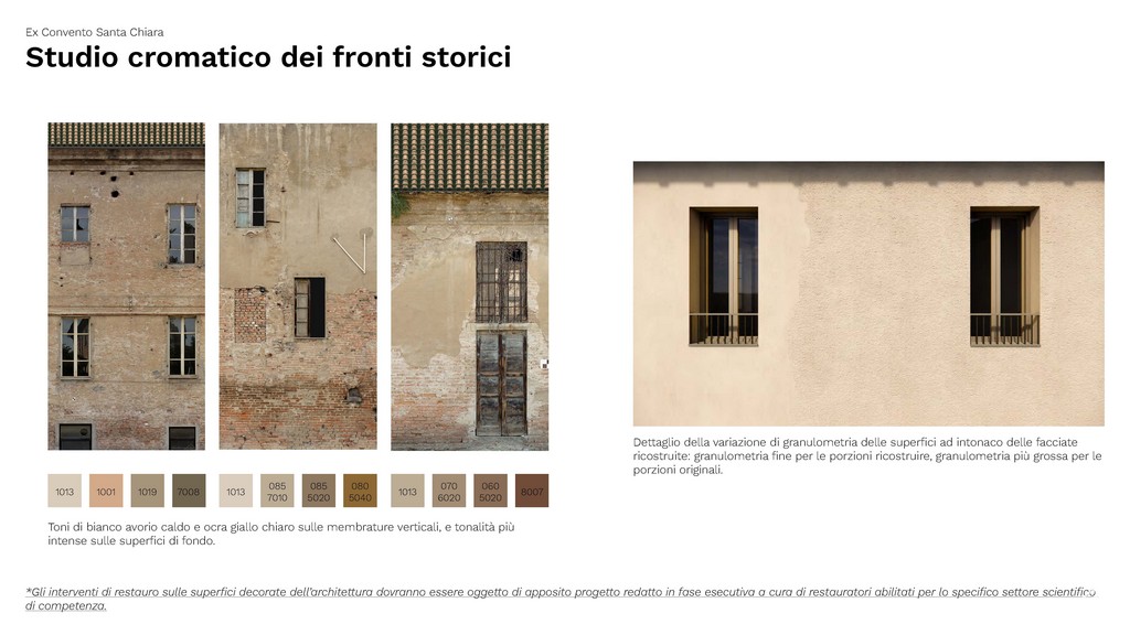 «Il progetto di recupero dell’ex Convento di Santa Chiara diventa l’occasione per valorizzare un ambiente unico nel suo genere, costellato da una moltitudine di spazi al servizio degli utenti e al tempo stesso accessibili dalla cittadinanza. Luoghi aperti alla partecipazione e adattabili alle diverse esigenze, come l’anfiteatro aperto ad incontri e manifestazioni, spazi per il tempo libero, per la cultura e luoghi privati e dedicati a studenti ed operatori. Tutto questo all’interno di una cornice che, con rispetto e sobrietà, vuole ricucire e creare un nuovo rapporto tra le diverse sedimentazioni storiche che hanno, nel tempo, caratterizzato la particolarità e unicità di questo luogo e le future occasioni sociali, culturali e quindi architettoniche che si aggiungeranno» sottolinea l’architetto Giorgio Donà, partner e direttore di Stefano Boeri Interiors.