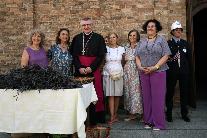 All’esterno di Sant’Antonino alcune volontarie della parrocchia distribuivano i sacchetti di lavanda.