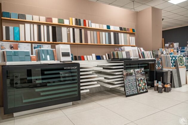 Giulia invece, insieme ad alcuni collaboratori, segue prevalentemente lo showroom dove si possono vedere ed acquistare pavimenti, rivestimenti, parquet, laminati, arredo bagno ed anche stufe e camini.