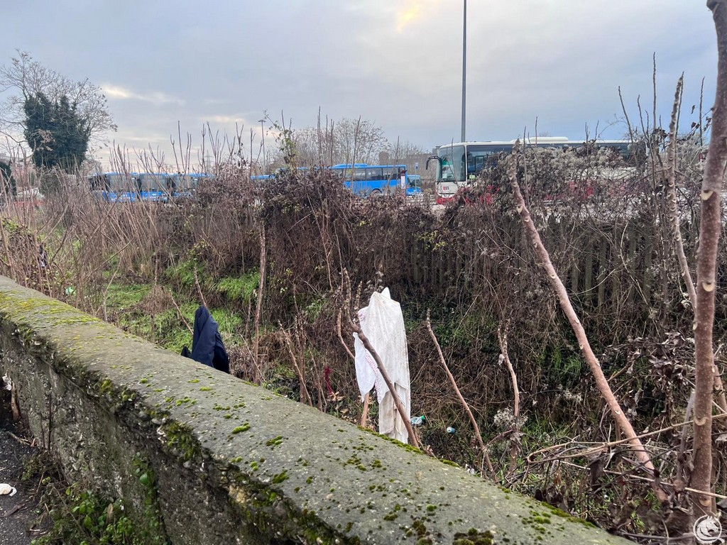 “Sotto passaggio sporco, angusto, utilizzato spesso come latrina. Cartelli abbattuti ed adagiati sul marciapiede. Autoveicoli completamente distrutti, uno dei quali utilizzato, in alcuni casi, per consumare rapporti sessuali (tanto che spesso, appena al suo esterno, si rinvengono preservativi usati, fazzoletti ecc.). Rifiuti di vario genere (indumenti, lenzuola, ombrelli, addirittura un carrello) abbandonati al fianco del marciapiede e non rimossi da mesi”.